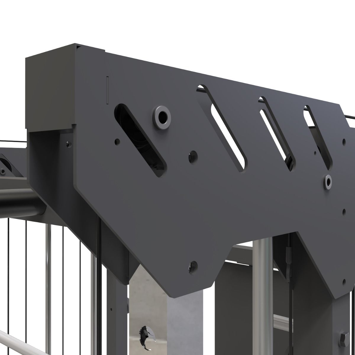 Contient quatre zones principales d'exercice : Fonction Smith, Double Poulie, poids libre et zone multifonctionnelle. Structure en acier d'une épaisseur de 1,5 mm avec peinture électrostatique antioxydante pour une meilleure adhérence. Équipée de plaques de renfort de 4 mm. La machine s'adapte facilement aux différentes hauteurs de l'utilisateur grâce à ses 15 points de réglage sur le multipower, offrant ainsi confort et sécurité pendant l'entraînement. Avec plus de 40 fonctions disponibles, la Binom Steel Force B1 peut répondre à tous vos besoins d'entraînement en force. La machine comprend :