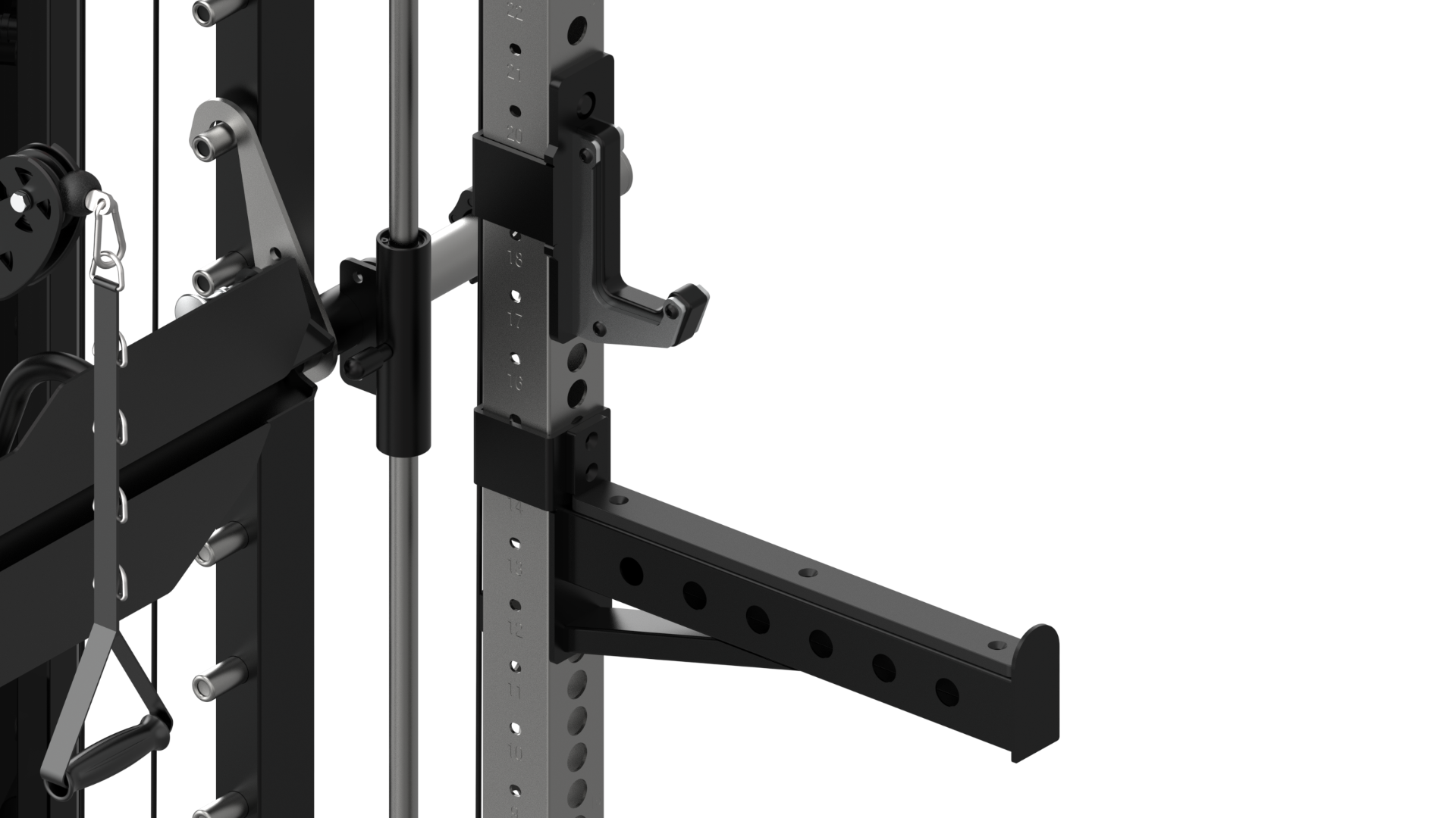 Gardez votre zone d'entraînement toujours organisée avec cette station créée par l’équipe Binom Steel Force. Son design permet de réaliser plusieurs exercices avec un seul appareil, optimisant l’espace et augmentant vos possibilités de travail. Cet équipement professionnel intègre contrepoids et guides assurant un déplacement fluide et hautement contrôlé.